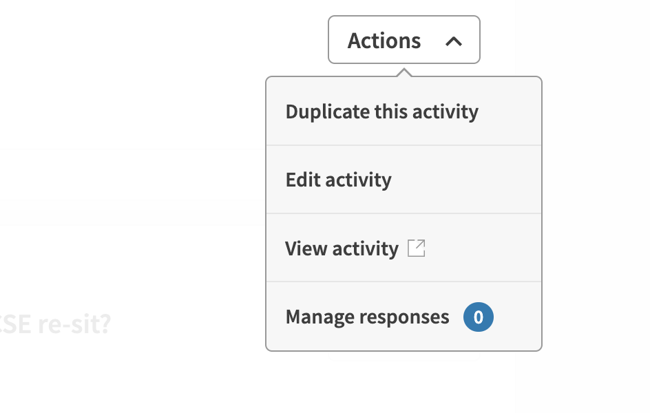 - Find the activity you wish to manage and use the 'actions' drop down on the right to choose an option.