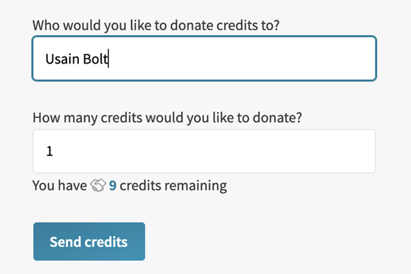 - Enter the number of credits to donate and use the ‘send credits’ button.