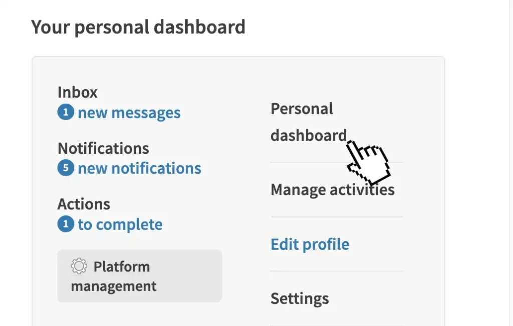 • Navigate to the 'manage your activities' section within 'your activities' drop down.